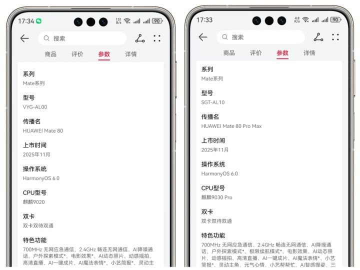 Mate 80标准版搭载麒麟9020处理器,跟上一代Mate70Pro保持一致;Mate 80 Pro搭载麒麟9030处理器;Mate 80 Pro Max搭载麒麟9030 Pro。